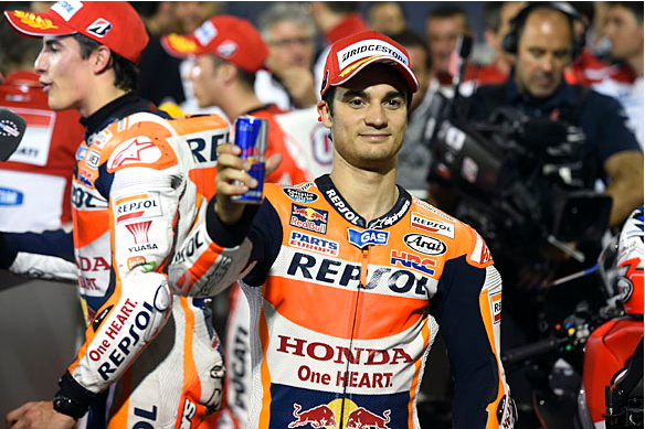 ﻗﺪ ُﻳﻀﻄﺮ دراج ﻓﺮﻳﻖ ﻫﻮﻧﺪا اﻹﺳﺒﺎﻧﻲ داﻧﻲ ﺑﻴﺪروﺳﺎ ﻟﻮﺿﻊ ﺣﺪ ﻟﻤﺴﻴﺮﺗﻪ ﻓﻲ ﺑﻄﻮﻟﺔ اﻟﻌﺎﻟﻢ ﻟﻠﺪراﺟﺎت اﻟﻨﺎرﻳﺔ ”ﻣﻮﺗﻮ ﺟﻲ ﺑﻲ“ ﺑﺴﺒﺐ وﺿﻊ ذراﻋﻪ اﻟﺘﻲ ﻳﺘﻌﺬر إﺟﺮاء ﻋﻤﻠﻴﺔ ﺟﺮاﺣﻴﺔ ﻟﻬﺎ.