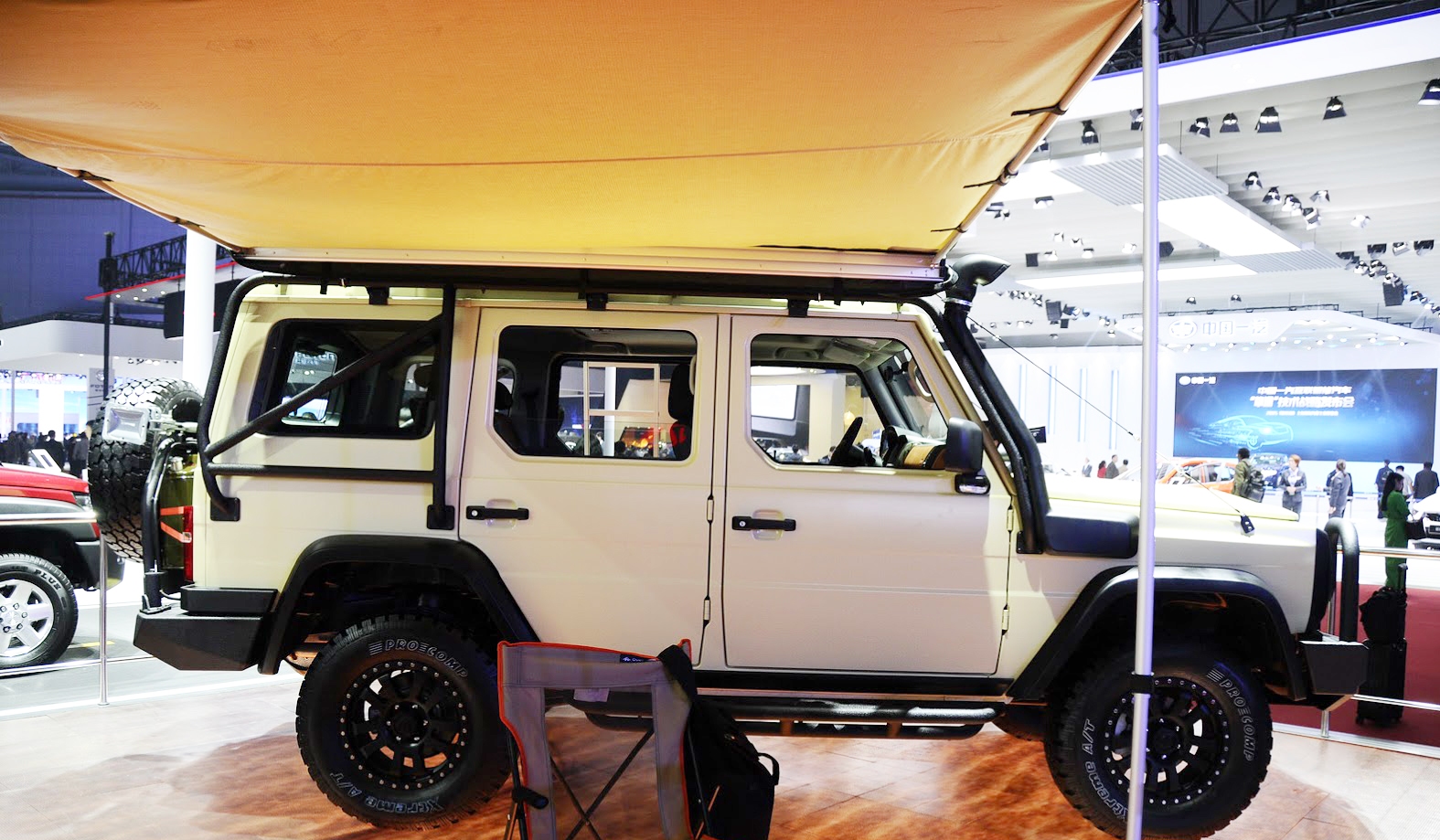 وكشفت عن هذه السيارة في معرض شنغهاي للسيارات الذي اقيم قبل عدة ايام وتبدوا من الوهلة الأولى أنها دمجت فيها ما بين تصميم G-Classمن مرسيدس وواجهة جيب شيروكي كما ان الامر لم يكن خارجياً فقط بل قامت في التصميم الداخلي بإقتباسه من لمسة العملاق الألماني.