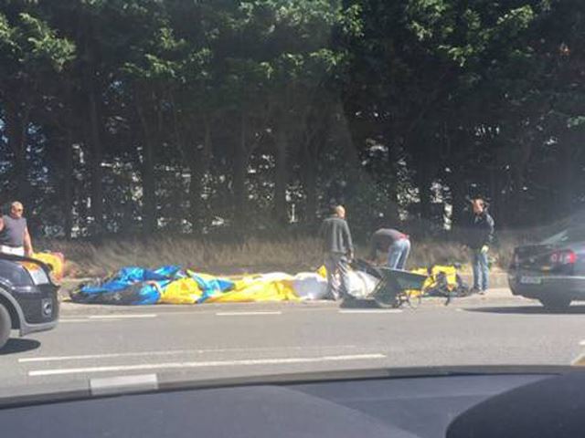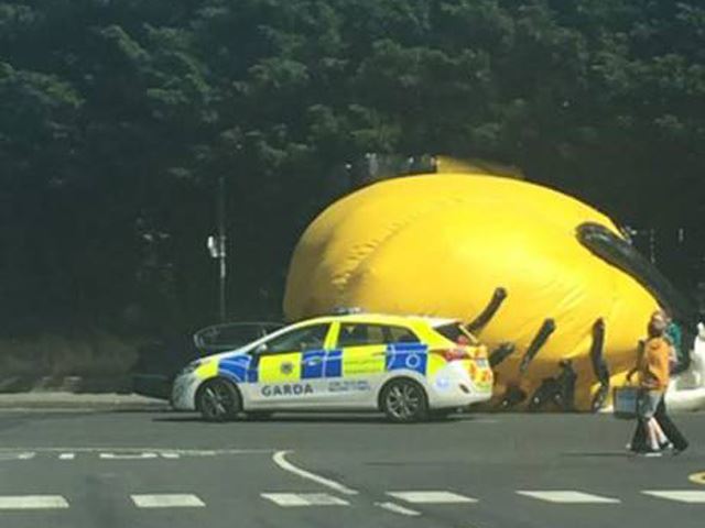 دفعت الرياح الشديدة بالونا من 40 قدم إلى التنقل من مهرجان محلي حتى وسط طرقات دبلن، مما سبب زحمة سير خانقة.