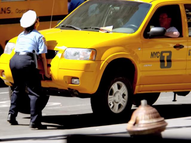 ما بدا كسوء تفاهم بين سائق سيارة أجرة و شرطية سير في مدينة نيويورك، تحول إلى مشهد مفاجىء لن ينساه المشاة.