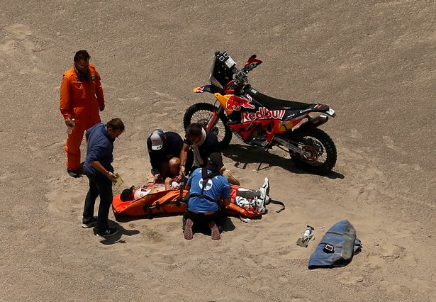 The KTM Rider had to be transported by helicopter to the hospital, where he was lucky enough to regain feelings in his lower body.