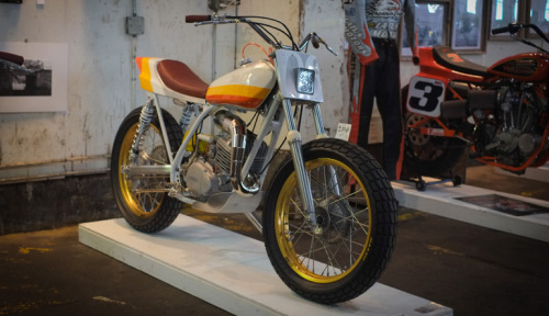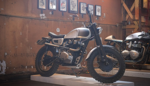 The last of the three was a Honda CL450 Desert Sled totally tricked out by Jason Paul Michaels and Will Benedict of Dime City Cycles—with sheet metal work by Frankie Bowman. I particularly like this bike because not only does it look like something that you would want in the zombie apocalypse, but also because I've seen it romp around in the mud and it's every bit as practical as it is beautiful.