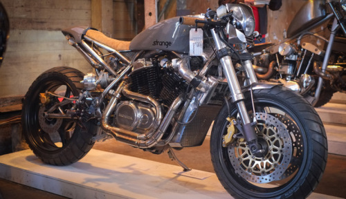 The most impressive bike in the show—in my humble opinion—was a beautiful custom Honda VT500T with a turbocharger built by Dagos Toma of Strange Coast Moto.