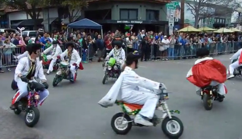 New Orleans has a mixed and mysterious history. Draped in ghost stories and voodoo lore, the city comes alive for its annual Mardi Gras celebration—a carnival often known for its festive use of beaded necklaces and liberal use of adult beverages. Sadly, this video from the heart of "The Big Easy" has no beads, but does contain a gaggle of Elvis Presley impersonators on minibikes. Oh, how adorable!