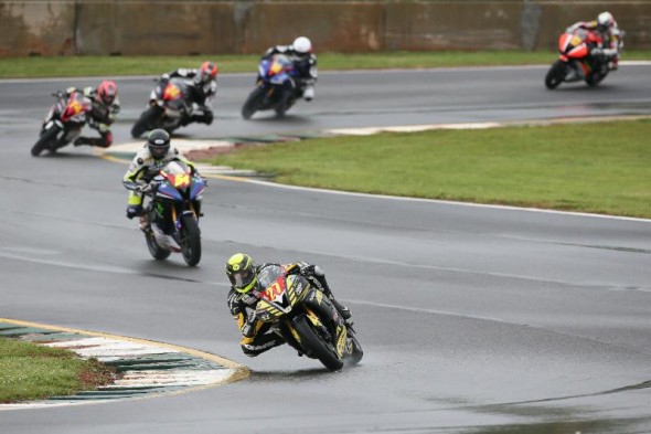 “Today was mostly me going down,” Gagne said. “I made a stupid little mistake and clipped the inside paint in warm-up. The paint here in the wet is a no-go. I had a pretty good crash. In the first race I was still feeling good in the wet, but I came out of five and got a little bit too excited again. I was running my dry bike. I just got caught off guard. To come back and race with these guys… it was a fun race and I’m glad to be back up here for sure.”