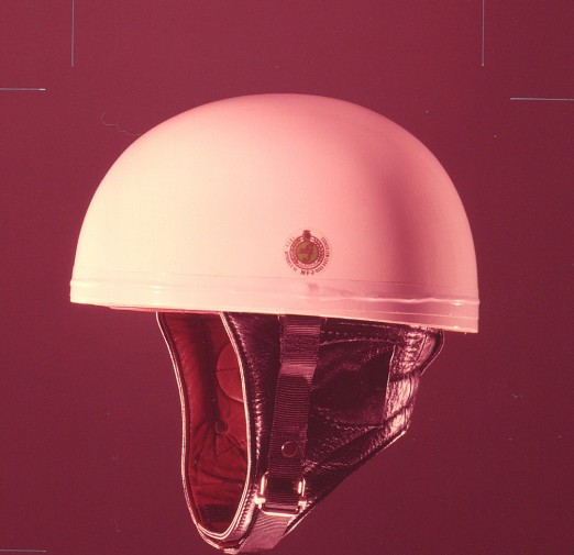 He lined the first helmet with cork. That was the first thing he thought of and could get hold of. He noticed an article about Styrofoam, and he somehow made a Styrofoam liner. There was no mold, so he made a mold himself and put the liner in a fiberglass shell. He set the basis for the modern motorcycle helmet.