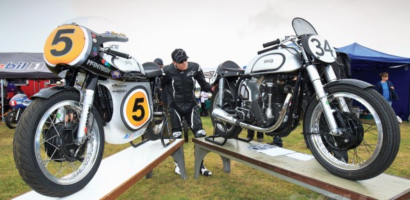 Maybe the part of the Pukekohe circuit that really speaks to the Manx’s innate greatness is the last turn, a cresting right-hander—ringed by a concrete wall—that can unweight bikes as they’re fully leaned over. Getting it right is crucial for speed along the front straight and also for staying alive. The Manx leans over and laser-locks onto a line. In these critical few seconds, every message imparted through the grips, seat, and pegs communicates confidence and stability, which, together with speed and reliability, is what Anstey used to win the Hailwood Trophy and set a Norton Manx lap record.