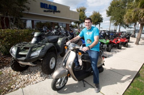 An excited Hatfield said, “I went to AIMExpo in 2014 with my father because I was looking forward to eventually getting a motorcycle, so I’m very happy with the scooter! I want to thank everyone at AIMExpo, KYMCO and Deland Motorsports for making this such a good memory.”