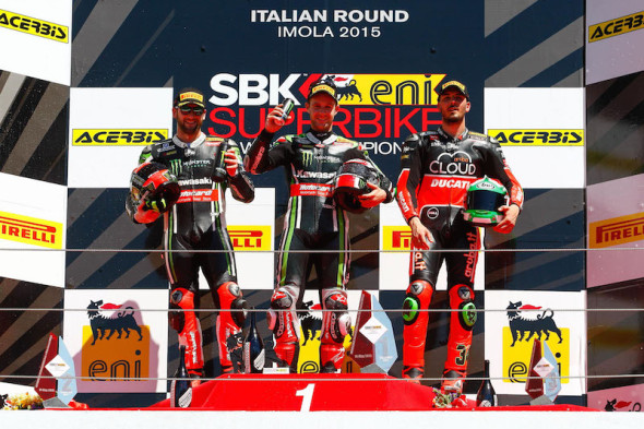 The opening race at Imola, the Acerbis Italian Round of the eni FIM Superbike World Championship resulted in victory for championship leader Jonathan Rea (Kawasaki Racing Team) after a the race was initially red flagged and restarted because of a crash involving David Salom (Team Pedercini Kawasaki), who fell off his factory ZX-10R at Rivazza on lap 11. After being taken to the Medical Center, the Spaniard was diagnosed with a left radius bone fracture and a deep elbow contusion.