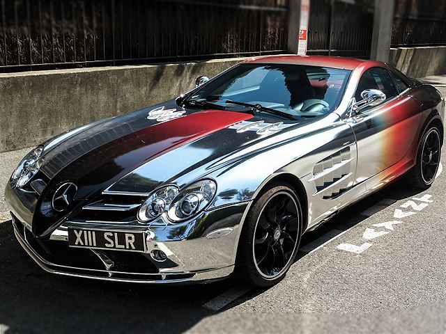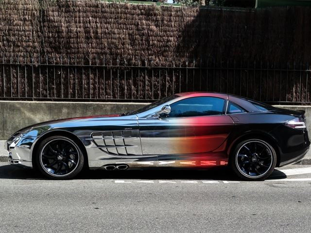Spotted in France, This SLR is restyled with a flashy chrome wrap that fades into glossy black.
