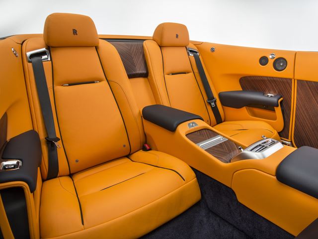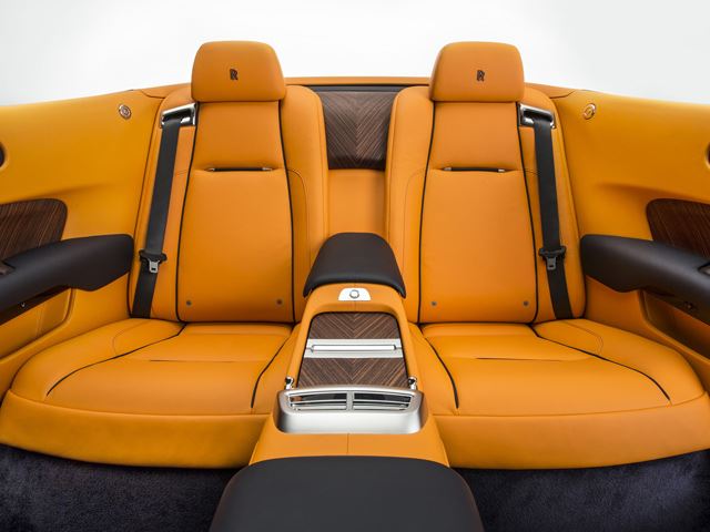 Based on the Wraith coupe, 80% of the soft top convertible features new bodywork and rear fenders described by the manufacturer as “the feminine hips of Dawn.”