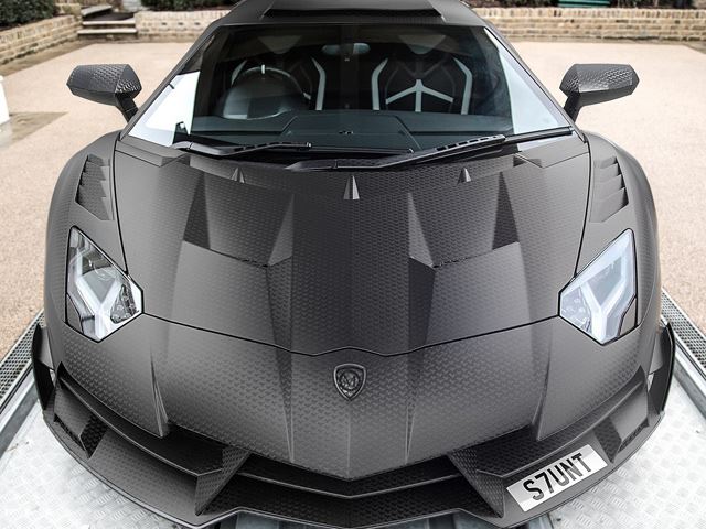From the exterior, the car features an unmistakable customized carbon fiber shell granting the Lamborghini a brand new front end, spoilers, side skirts, ventilated hood and a roof-mounted intake.