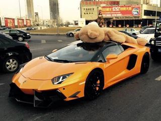 We’re not sure what inspired the owner of this DMC-styled Lamborghini Aventador to strap a giant teddy bear onto the supercar’s roof, but if it was to attract attention then mission accomplished.