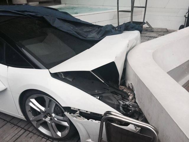 1) It takes a special kind of person to smash up a Lamborghini Gallardo Spyder as bad as this. Most parking lot accidents occur at low speeds and result in cosmetic damage. This accident, which occurred at the Le Meridien Hotel in New Delhi, left more than just a scratch on the door. The front end was completely totaled and the passenger side mirror was knocked off. Go big or go home, right?