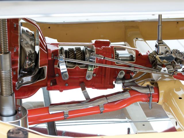 After it rolled off the assembly line, GM shipped it off to a specialty company that built attention-grabbing exhibits for commercial and industrial shows. Basically, the body was mounted on elevating rams that raised the exterior almost two feet off of the chassis, thus leaving the internal running gear fully exposed. Then the exterior of the engine, transmission, driveshaft and other mechanical bits were finished in bright red. Even the muffler’s exhaust chambers, section of the chassis, and the right front disc brake were exposed. After it was retired from the show circuit in 1965, this display Vette disappeared.