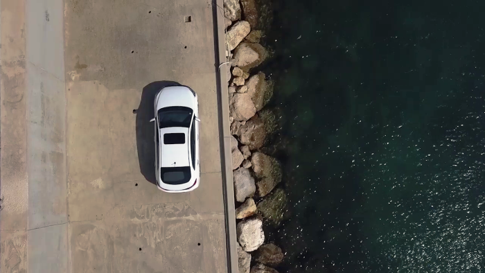 Sharp headlights connected to the radiator grille and the C-shaped taillights are also integrated with the rear glass which gives it a distinct and modern appearance.